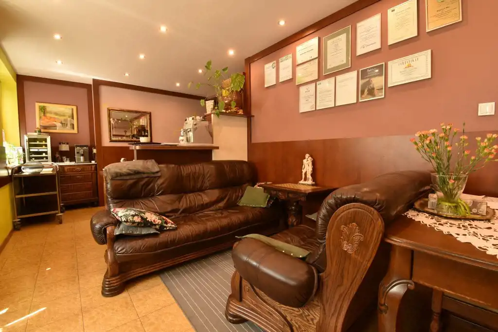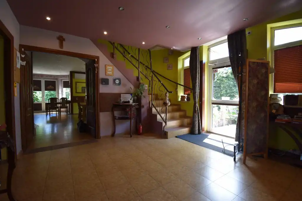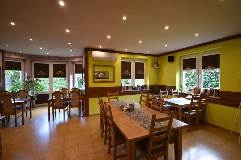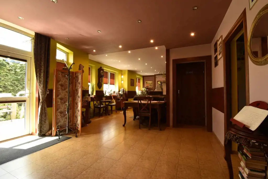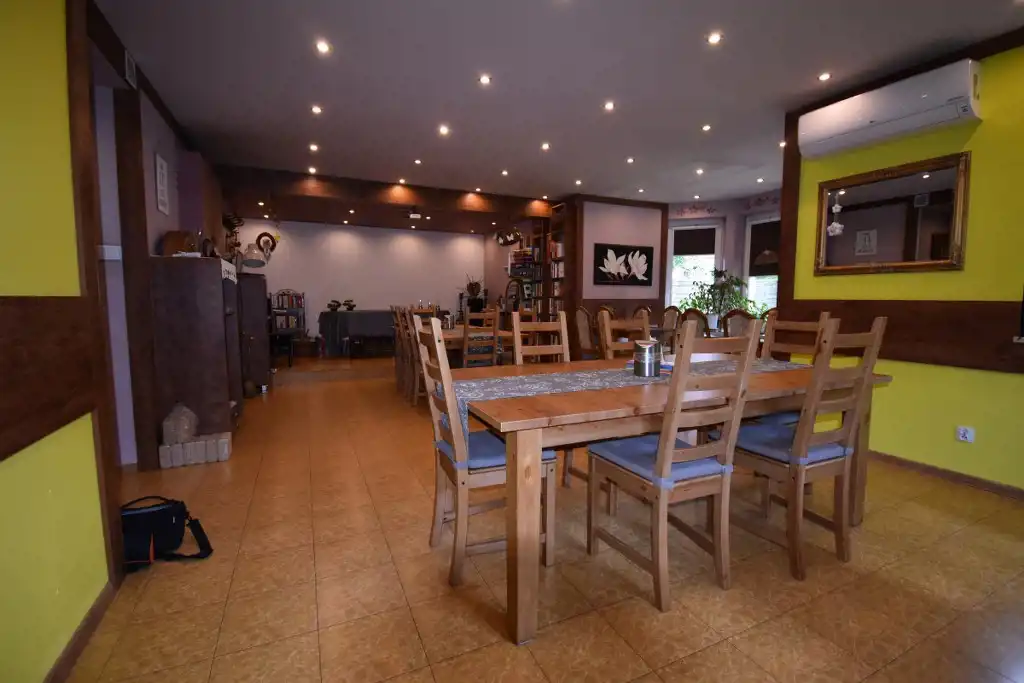 W budynku znajduje się 6 pokoi gościnnych, w których przewidziano 15 miejsc noclegowych. Zastosowano system intercom w celu usprawnienia łączności z każdym pokojem. Lokal posiada 3 wejścia. Wysokość sali restauracyjno - konferencyjnej 2,55 m.