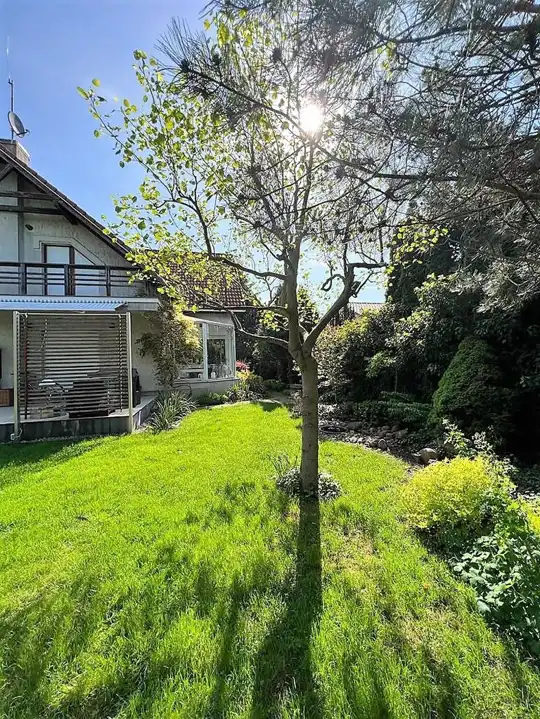 Zagospodarowany ogród z licznymi nasadzeniami wyposażony jest w system automatycznego nawadniania. Do domu doprowadzenia wszystkie media: prąd, woda, kanalizacja, gaz.