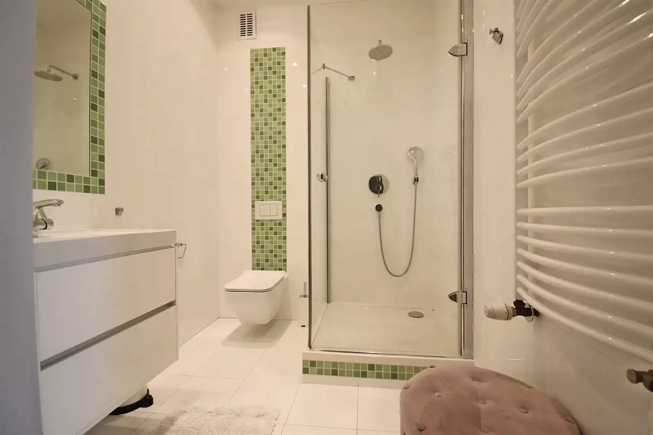 The house has been carefully finished with attention to every detail. The kitchen furniture was custom-made (with a stone worktop) and fitted with high-quality household appliances. The house is heated with a dual-function gas boiler.