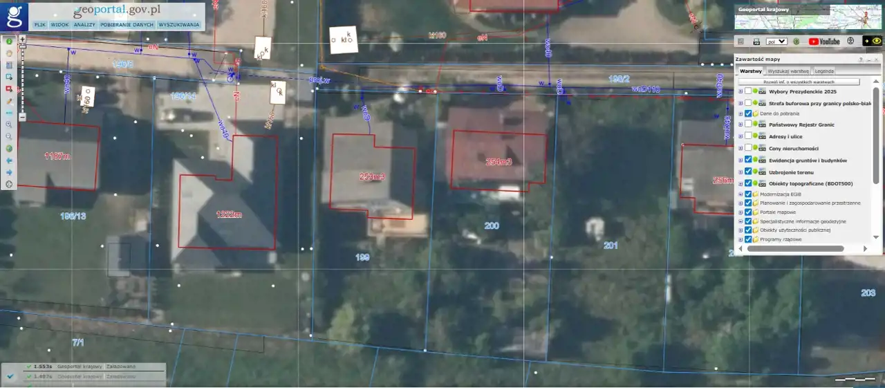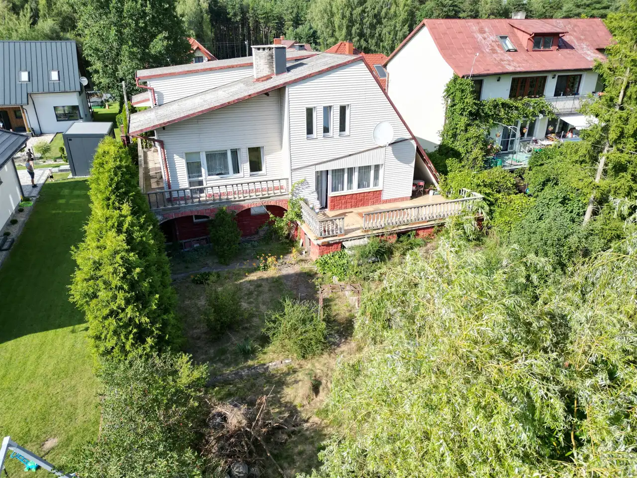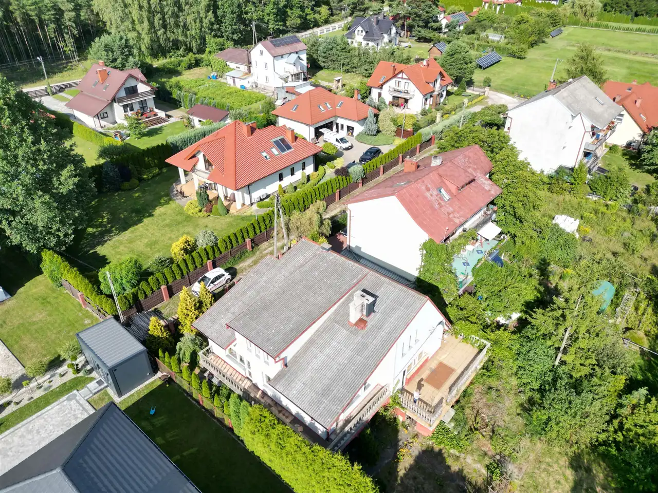 For sale: a detached eight-room house with a usable area of approx. 200 m2 (total area approx. 253 m2). The property is located in the Białogon district, on Janowska Street. The building sits on a plot of 677 m2. The plot is rectangular, with dimensions of approx. 18.41 m (frontage) x 38.13 m. The house was built in the 1980s.