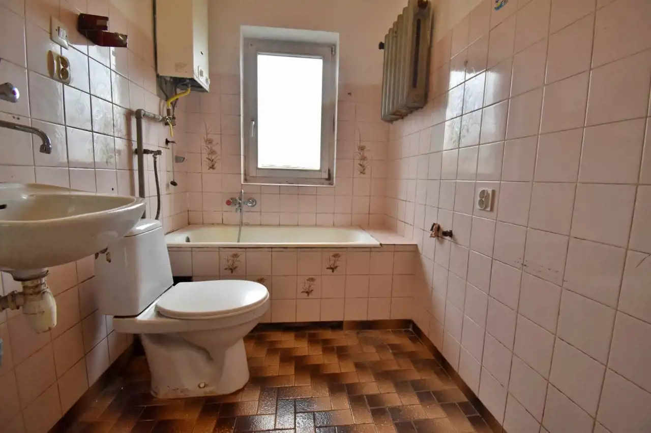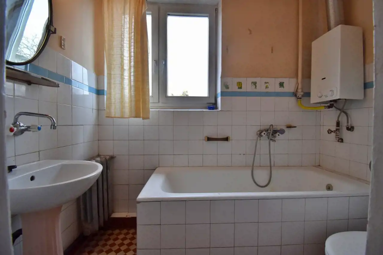 Okna drewniane. Ogrzewanie i ciepła woda za pomocą gazowego pieca dwufunkcyjnego.