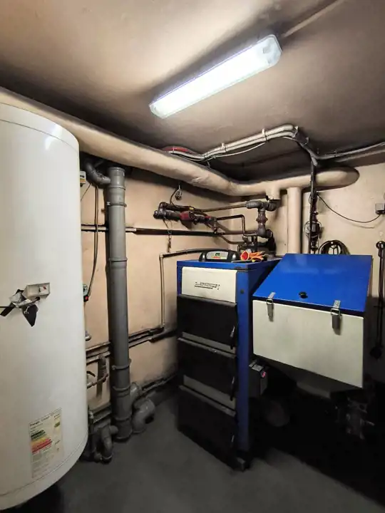 W trzykondygnacyjnym budynku zaprojektowano część gospodarczą (garaż, kotłownia, pralnia, pomieszczenia gospodarcze); natomiast na pozostałych dwóch piętrach znajdują się dwa odrębne mieszkania. Całość skomunikowana niezależną klatką schodową. Istnieje oczywiście możliwość dowolnej aranżacji, w zależności od potrzeb. Dom budowany w technologii tradycyjnej, murowany (materiał mieszany - cegła, suporex), ocieplony styropianem - stosunkowo nowa elewacja, do niewielkich poprawek. Okna częściowo wymienione. Ogrzewanie - piec na eko groszek (możliwość podłączenia gazu, lub zainstalowania pieca na pelet. Media: prąd, woda, kanalizacja; gaz w ulicy.