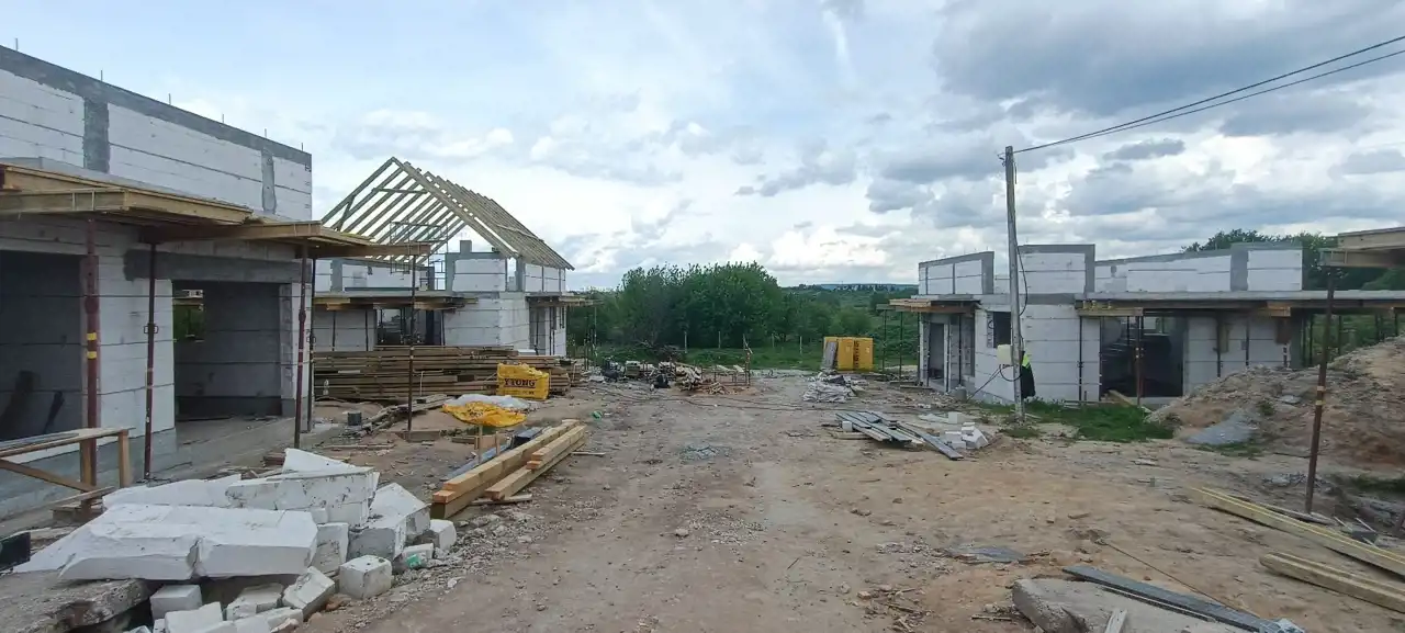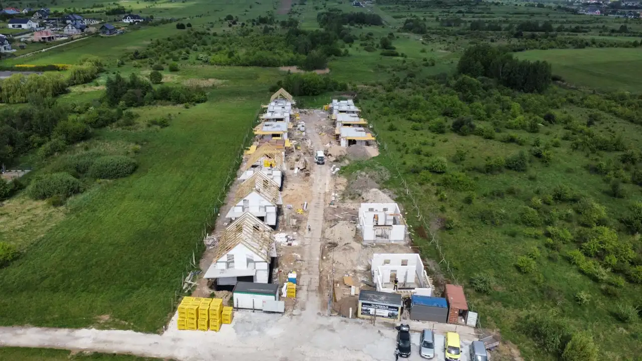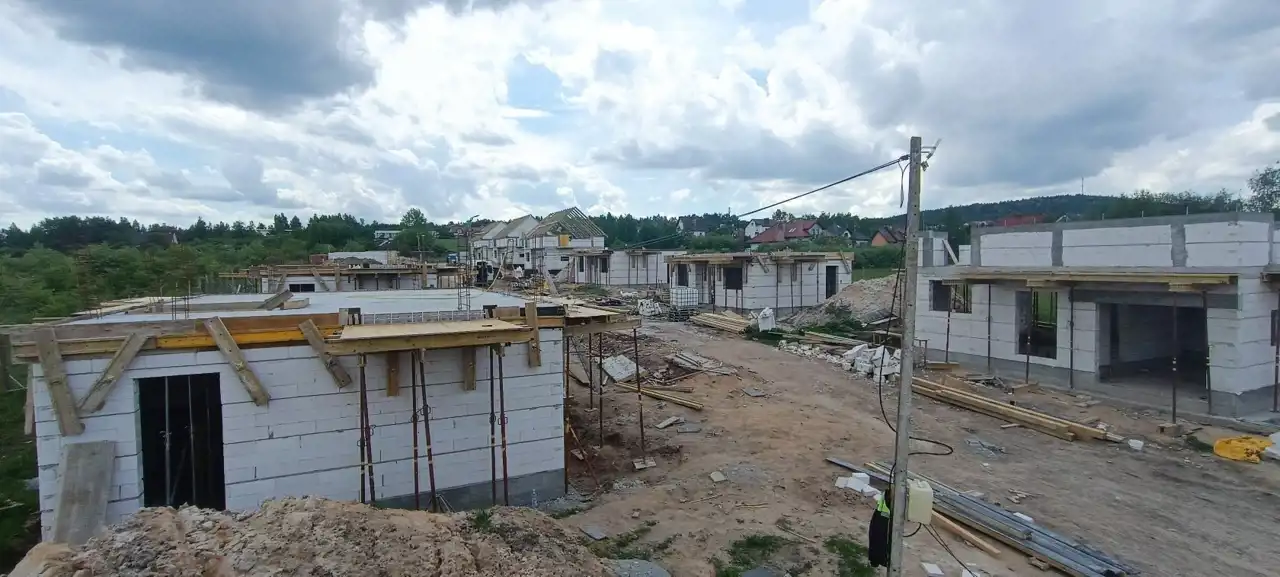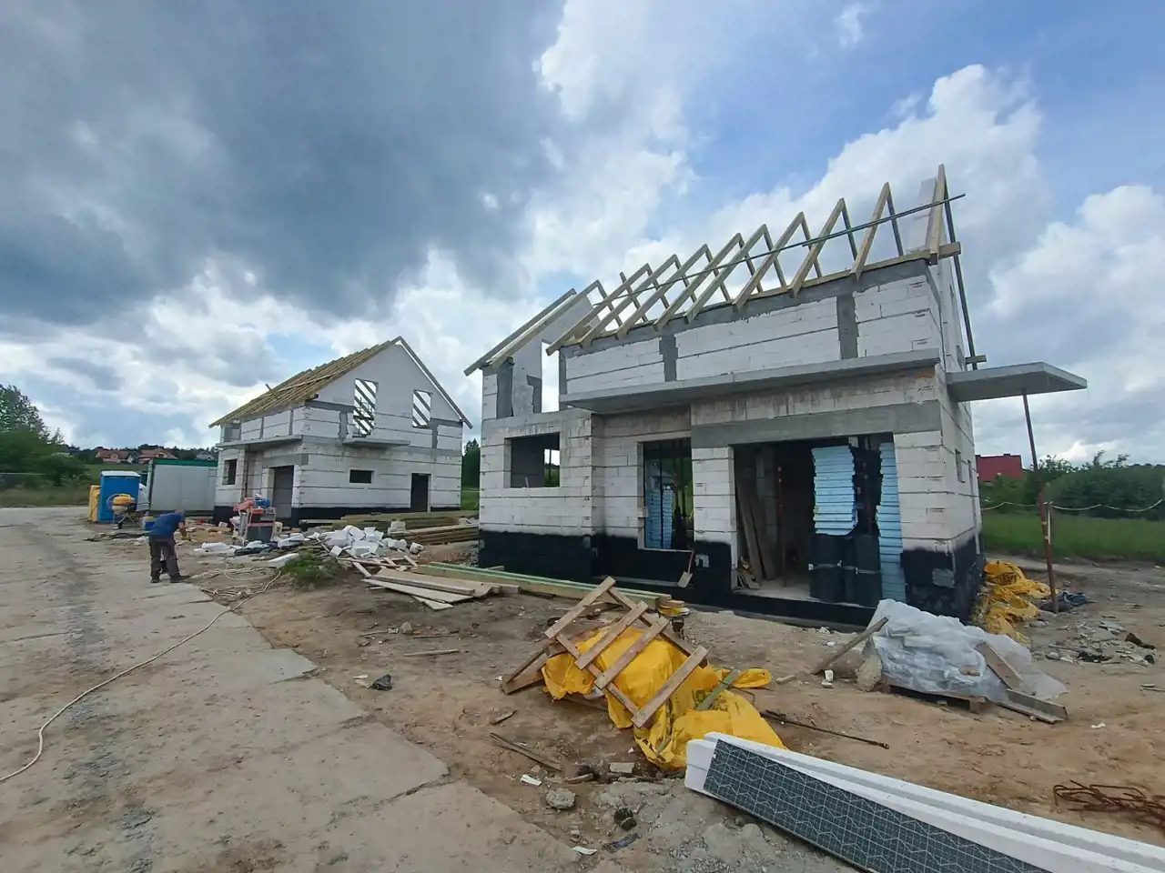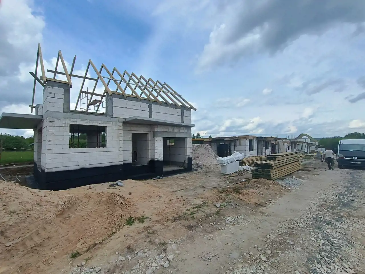 Domy wybudowany w technologi tradycyjnej, murowanej z bloczków betonowych 24cm, ocielone styropianem 18 cm, dach kryty blachą. Ogrzewanie budynków nowoczesną pompą ciepła. Domy przygotowane będą pod montaż instalacji fotowoltaicznej.