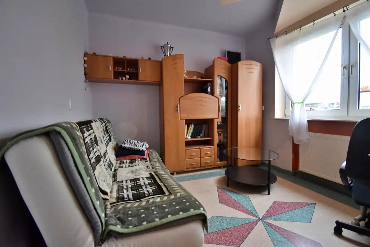The property is located in a quiet and peaceful residential area. Nearby there are numerous shops (shopping mall, Lewiatan, Delikatesy Centrum), a bus stop, a church, a primary school, a kindergarten, and a health center.