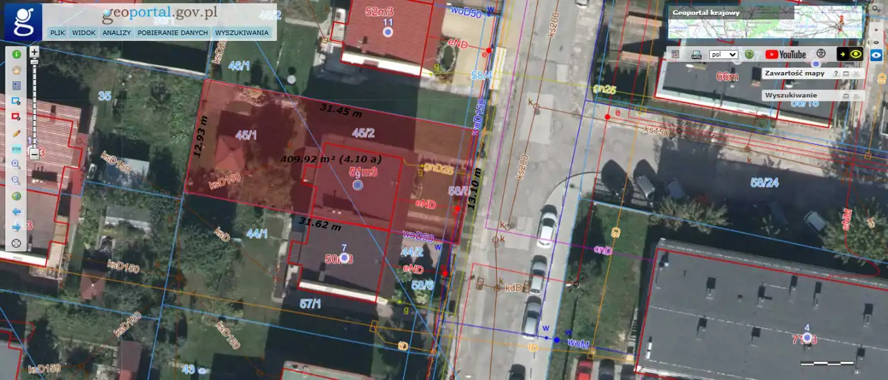 Wymiary działki ok.: 13 (szer. od frontu) x 31 [m].