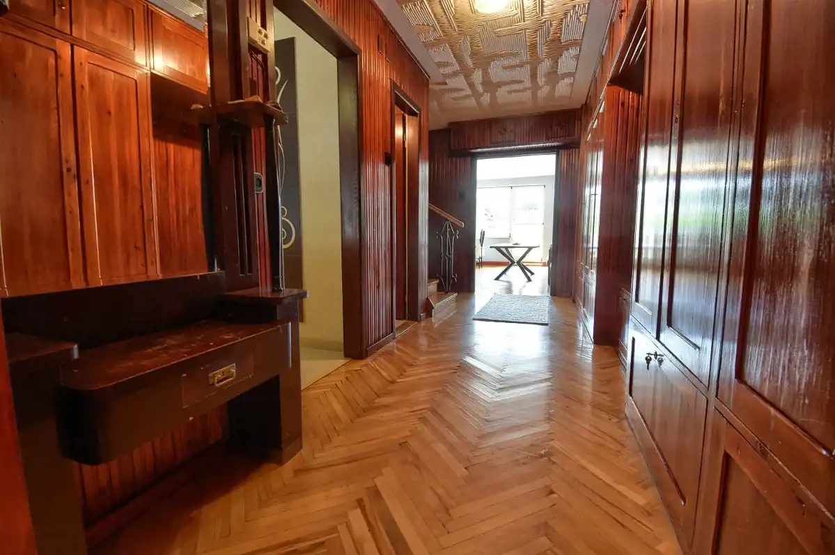 The building is situated on a plot of 188 m². The floors in the rooms and corridors are parquet, while the bathrooms, kitchen, and basement have ceramic tiles. The wooden joinery is in good condition. Security shutters are installed. Heating and hot water are provided by a dual-function gas boiler and an electric water heater. The roof is covered with heat-weldable roofing felt (replaced in 2002), and the building is insulated with 10 cm thick styrofoam. Utilities: electricity, sewage, water, gas – all available in the building.