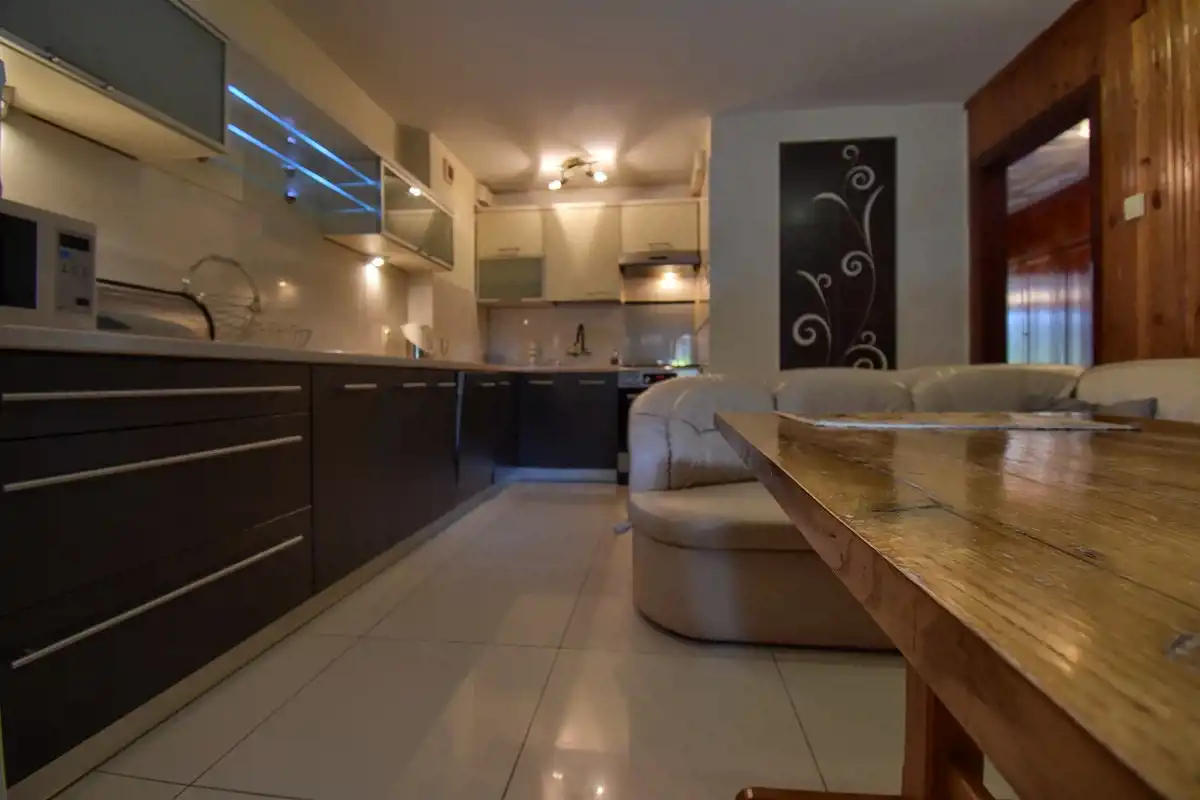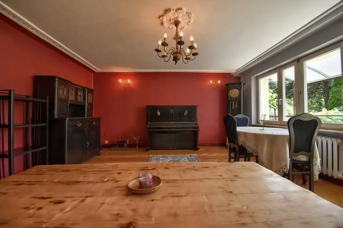 The house is in a condition that requires refreshing. The plot surrounding the house is well-maintained. Nearby, there is a ski slope and a forest. It is an ideal place for those who appreciate peace, active leisure, and nature. Another advantage is the good access to the city center. Quiet, peaceful neighborhood. Close to a kindergarten, school, shops, city center, and bus stop.