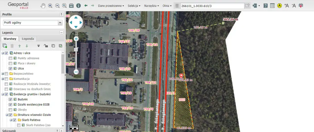 Na sprzedaż działka o pow. 4482 m2 zlokalizowana przy ul. Ściegiennego w Kielcach. Działka niezabudowana, w kształcie trójkąta, o wymiarach (w przybliżeniu): 209 m (front) x 41 m x 214 m. Dojazd do nieruchomości drogą asfaltową.