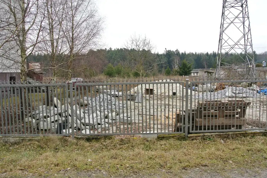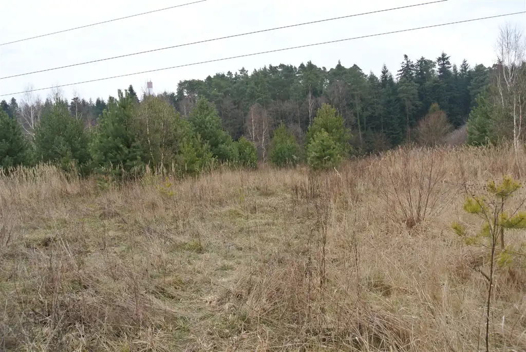 Na działce stoi słup wysokiego napięcia, a nad nią przebiega linia wysokiego i średniego napięcia.