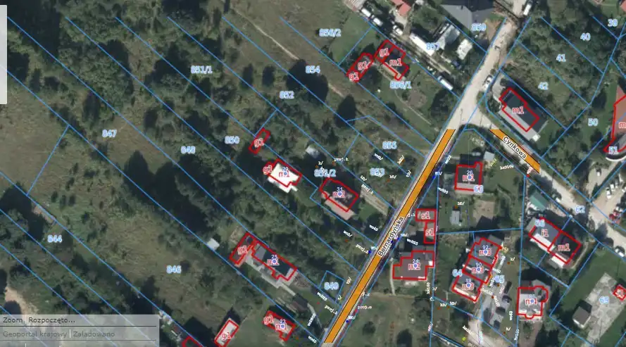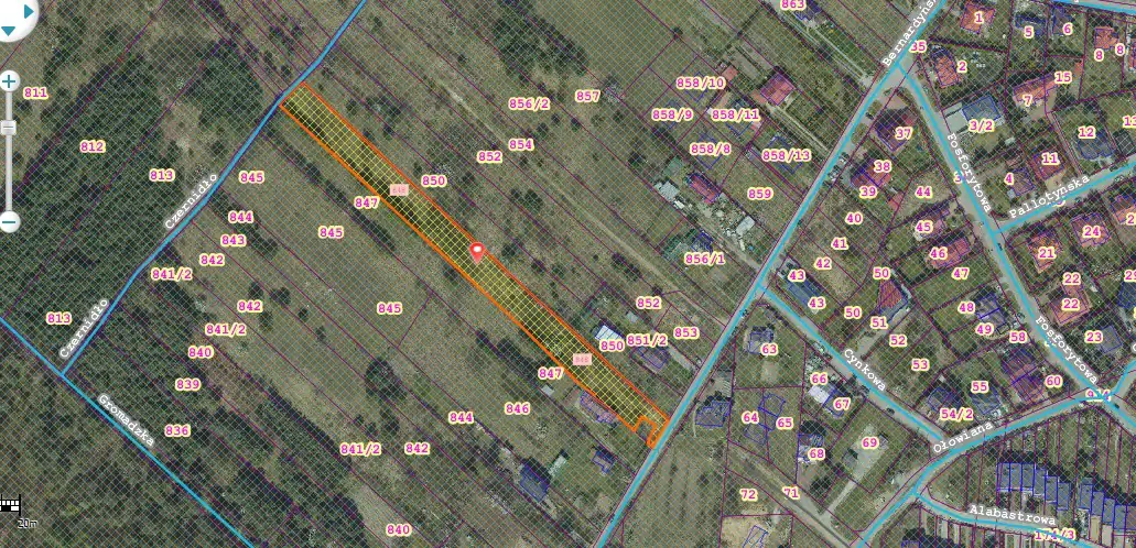 Przybliżone wymiary działki: 16 szerokość x 254 długość [m].