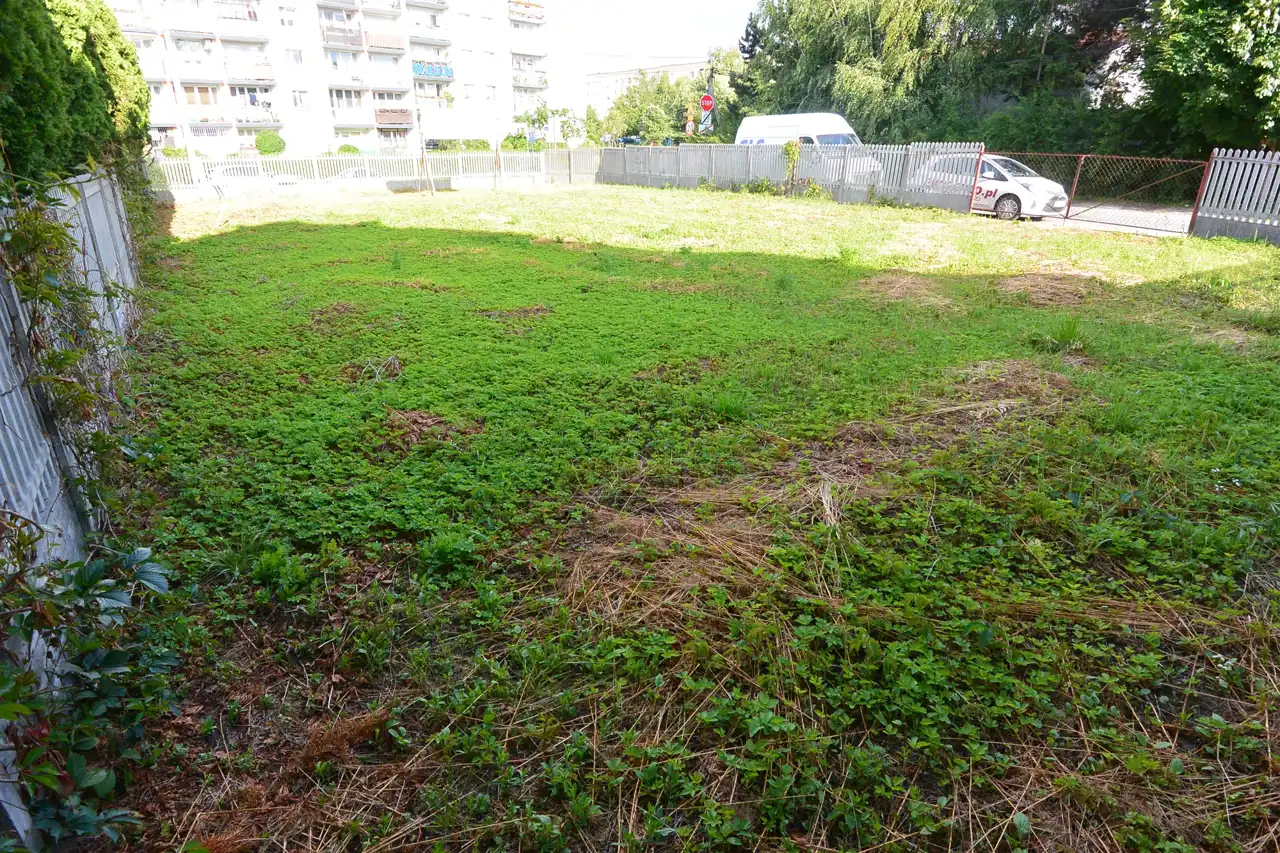 The plot is situated in the first line, with direct access via a public asphalt road. The surroundings include both undeveloped and developed plots with single-family and multi-family housing. The plot is flat, trapezoidal in shape, partially landscaped, and undeveloped. The property is fenced.