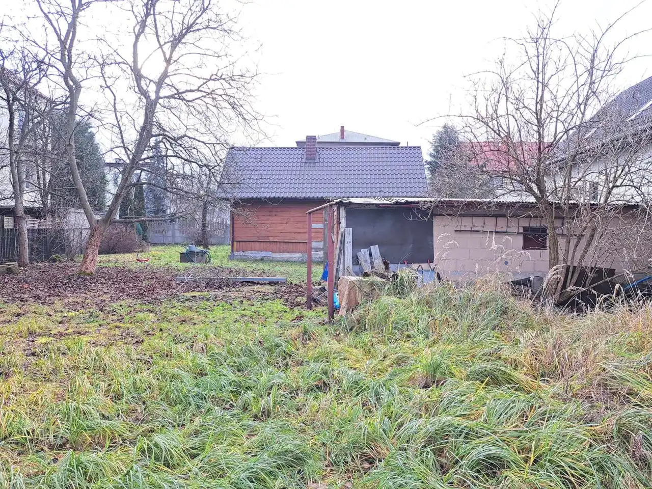 Na sprzedaż działki przylegające do siebie o łącznej powierzchni 707m2 z niewielkim budynkiem mieszkalnym o powierzchni zabudowy ok. 45m2. Budynek drewniany, pokryty blachodachówką, ogrzewany za pomocą pieca kaflowego podłączony sieci wod-kan. Teren posesji ogrodzony. Wjazd bramą stalową dwuskrzydłową. Na działce znajdują się zadbane, wieloletnie nasadzenia: tuje, świerki oraz drzewka owocowe. Dodatkowo na działce dostępny jest murowany budynek gospodarczy o powierzchni zabudowy ok. 25m2.. W bezpośrednim sąsiedztwie nieruchomości znajdują się nowoczesne budynki mieszkalne.
