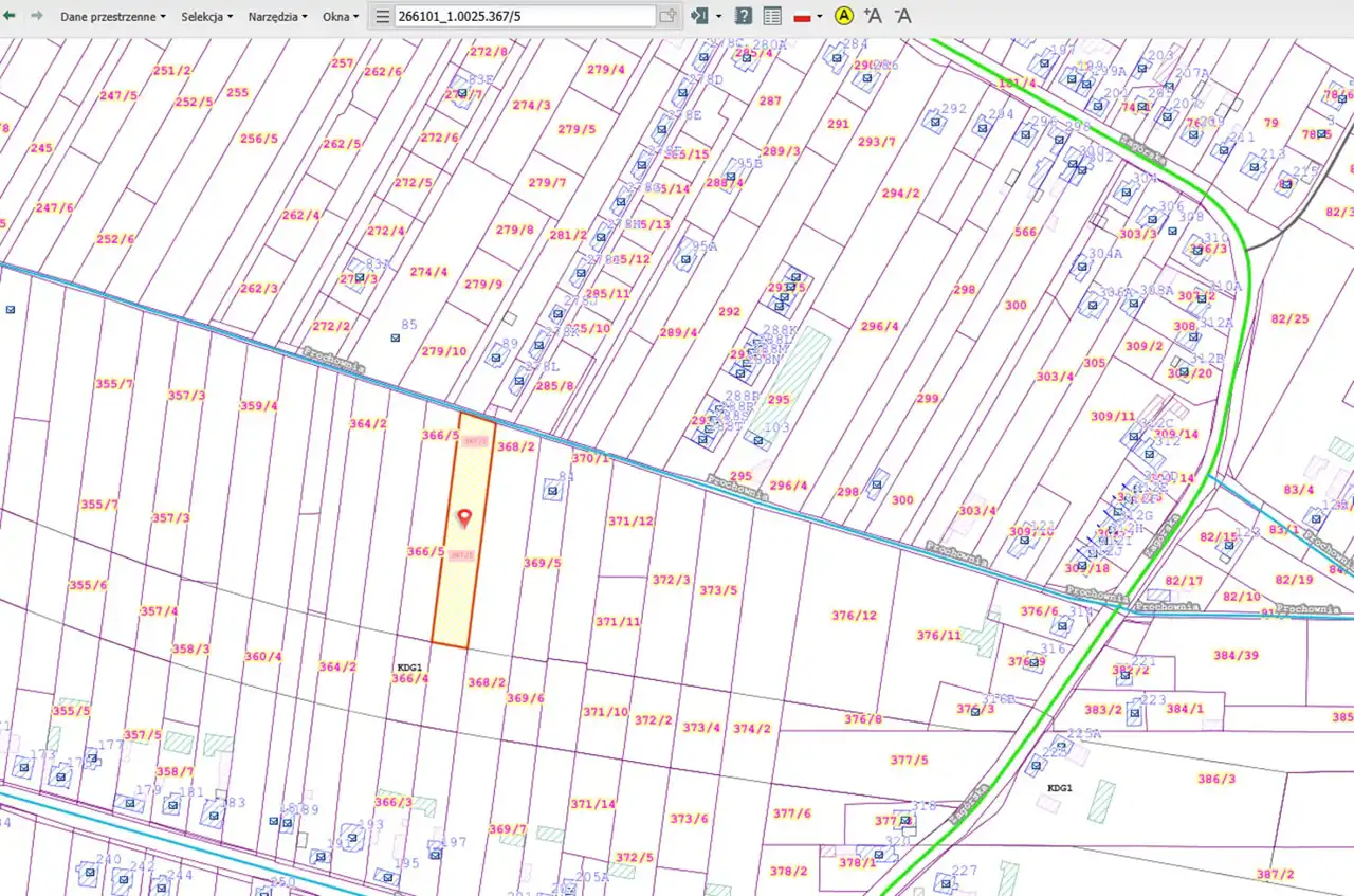 - Działka Niezagospodarowana, lekko nachylona, prostokąt