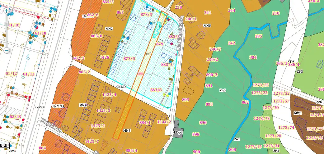 Zoning in the Local Spatial Development Plan: designated with the symbols MN3 and MN5 - areas for single-family residential development, and approximately 100 m² - 9KDD - areas for access roads of public class.
