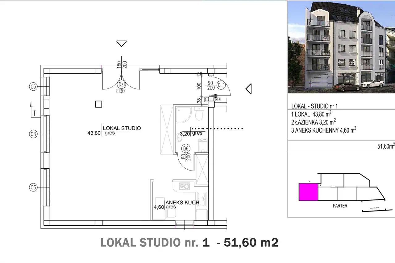 - lokal (43,80 m2),