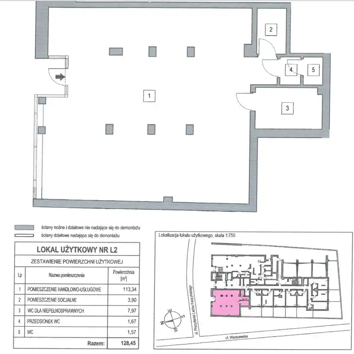 - pomieszczenie handlowo-usługowe o pow. 113,34