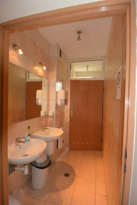 Toaleta ogólnodostępna na kondygnacji wynajmowanego lokalu, sprzątana 3 razy w tygodniu.