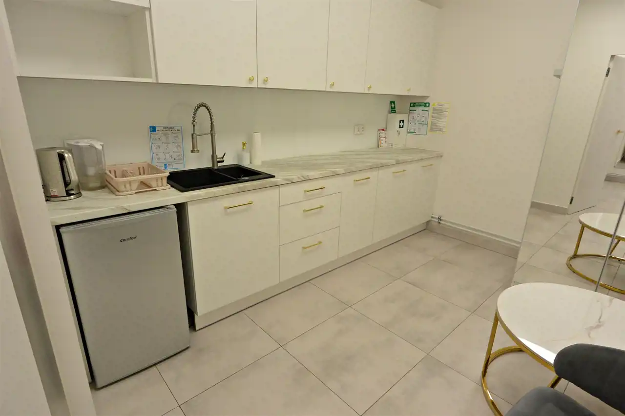 The space is a walkthrough unit – it provides access to adjacent premises and to shared social rooms and restrooms used by other tenants.