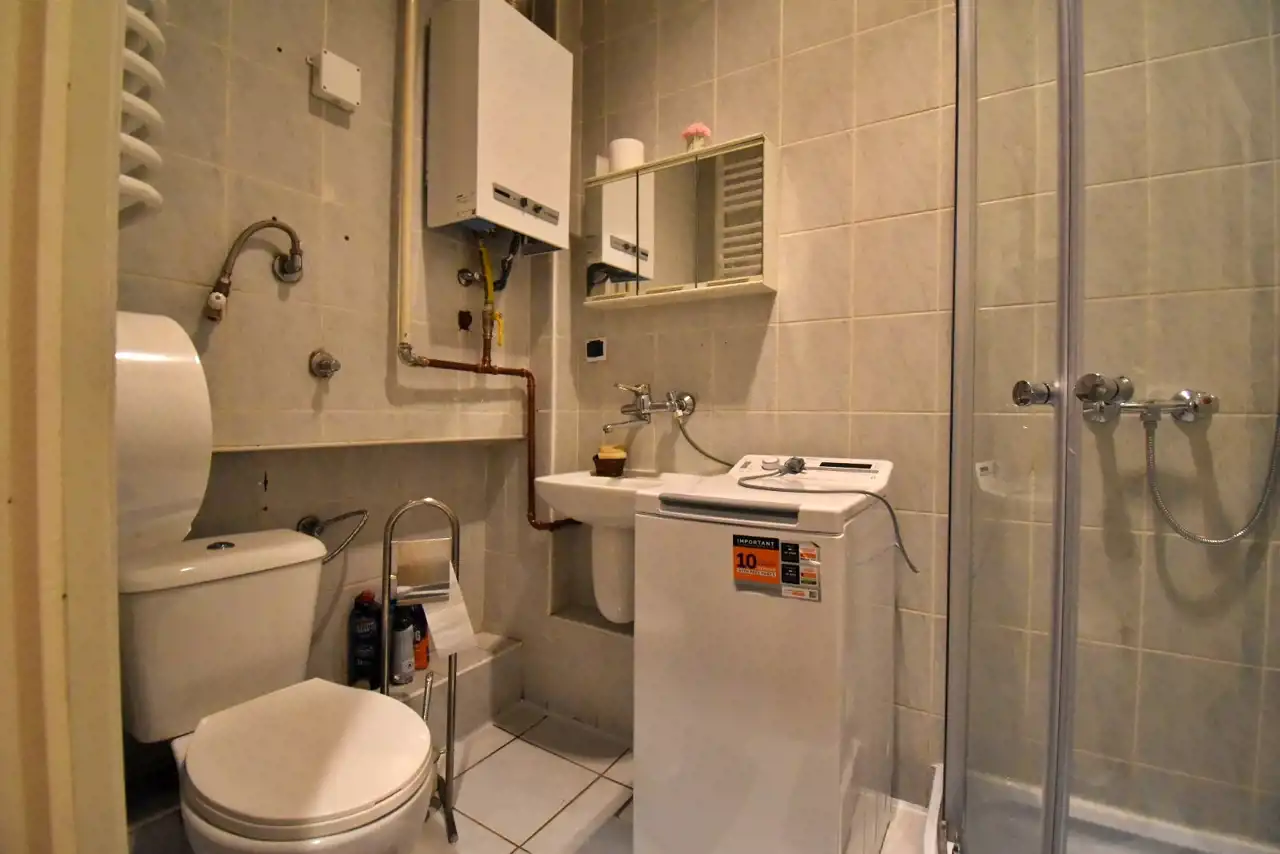 - łazienka z prysznicem łącznie z WC, wyposażona w pralkę,