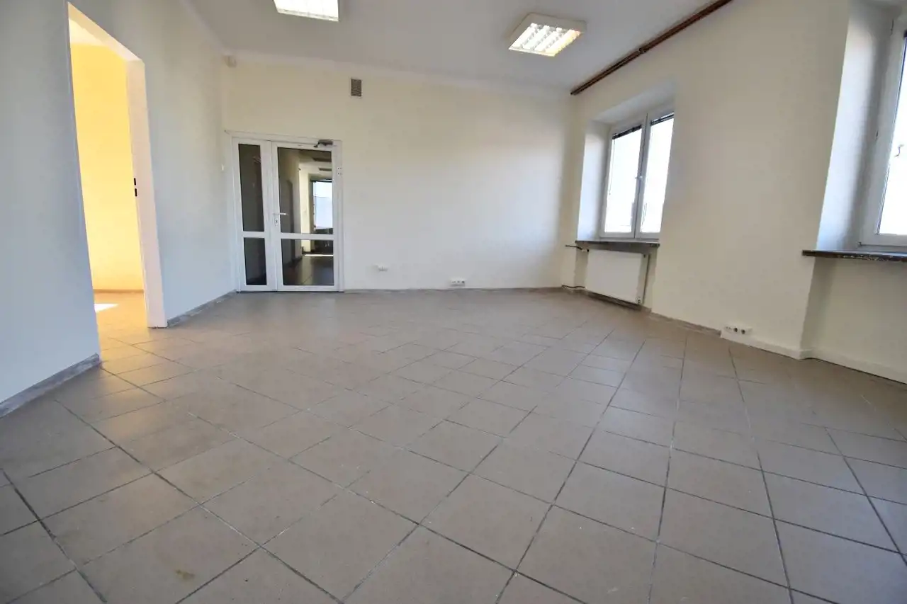For rent: an office/service unit with an area of approx. 42 m2, located on the ground floor of a one-storey office building on Łódzka Street.
