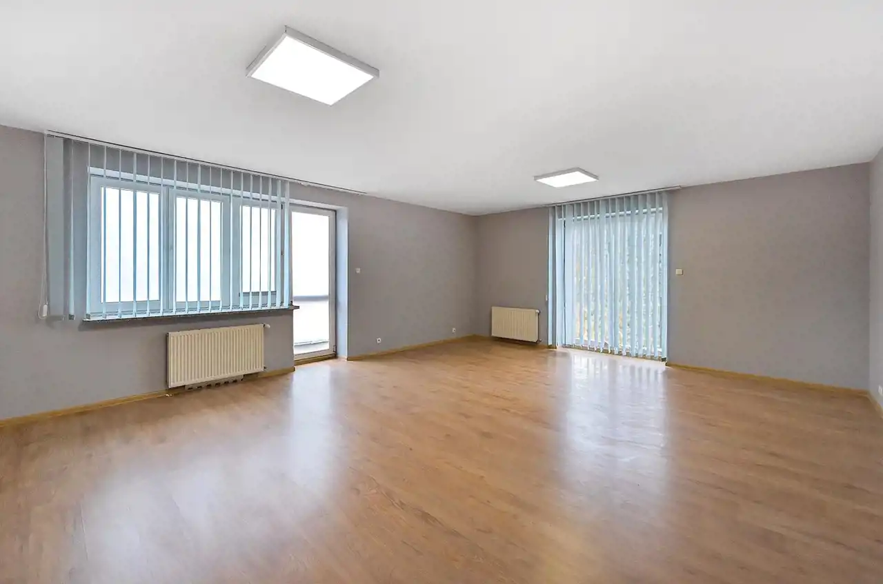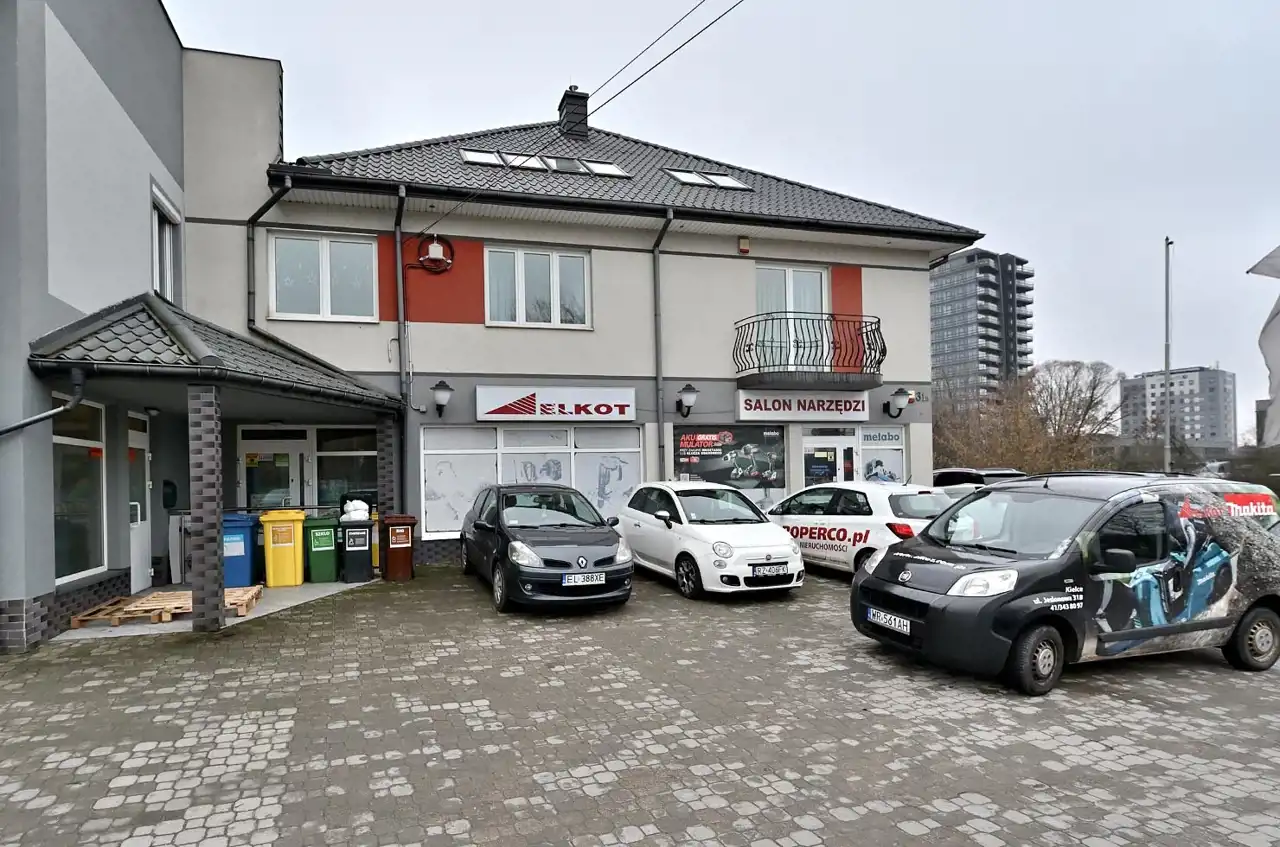 For rent an office-service unit with an area of approx. 40 m2, situated on the first floor in a building at Jesionowa Street. Rectangular room measuring approx. 7 x 5.6 m, bright, large windows, air-conditioned, with two balconies. Panel flooring. On the floor there is a spacious shared hall-waiting area, a bathroom (3 m2), a social room (2 m2) and a utility room (6 m2). Building from 1998. Fibre-optic installation in the unit. Large customer car park in front of the building. Possibility to place advertising on the façade. 24/7 access.