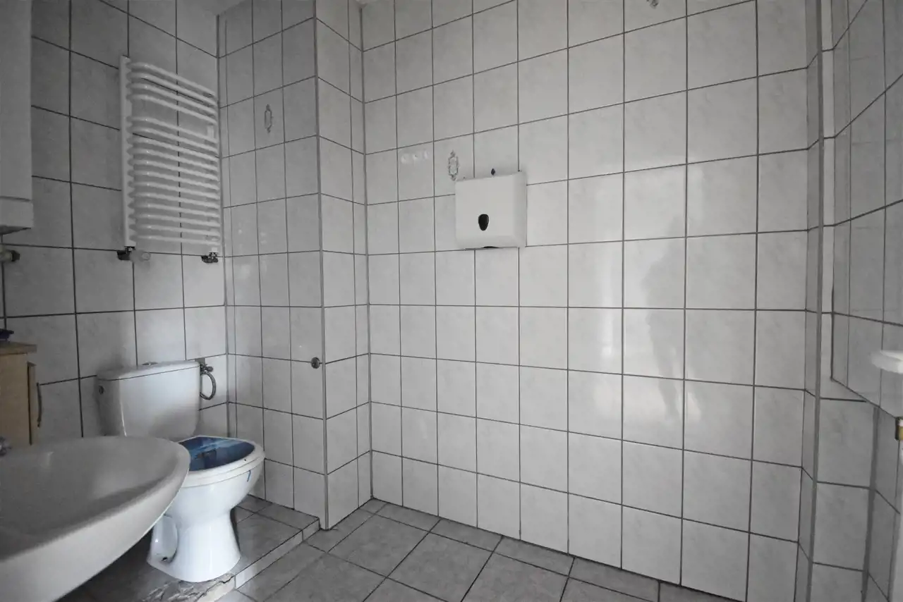 The unit has two independent entrances and consists of five rooms, a kitchenette (as a back-office area), and a bathroom. PVC windows. Laminate flooring. Heating is provided by a dual-function gas boiler. Ceiling height: approx. 2.83 m. The premises are suitable for office use.