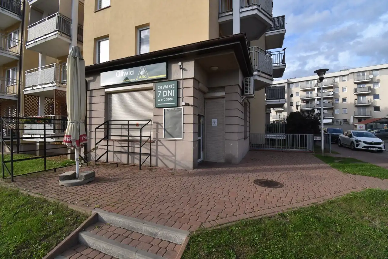 A front-facing retail/service unit with an area of 55.3 m² is available for rent, located in the Ślichowice district, on the ground floor of a residential building.