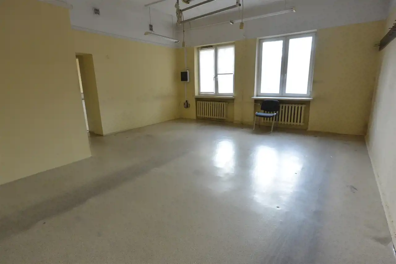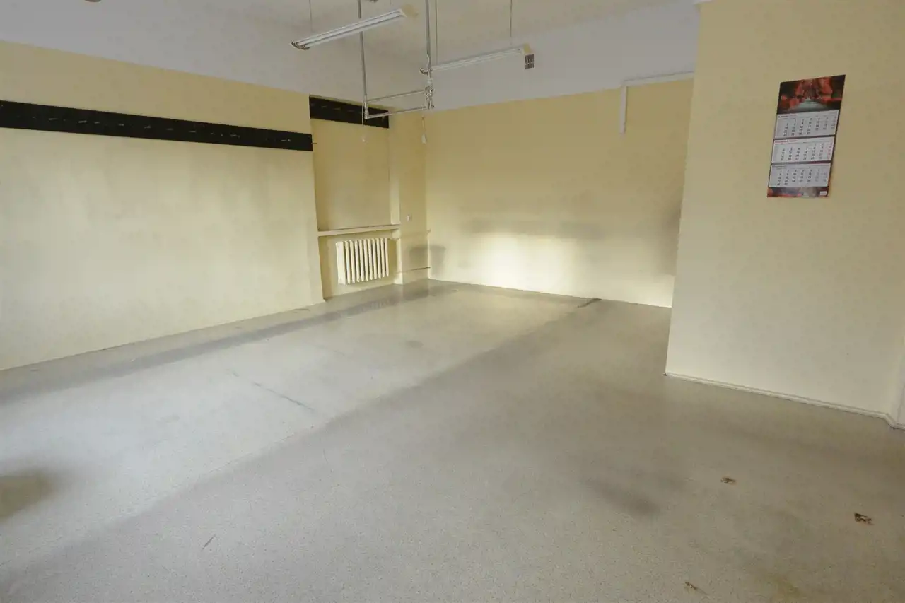 The premises are dual-aspect. Access is through a shared staircase from the street. The property is in a condition allowing for individual arrangement and offers potential for warehouse or commercial and service activities. The building is located in a high-traffic area, surrounded by shops, service points, and residential buildings. A public parking area is available in front of the building.