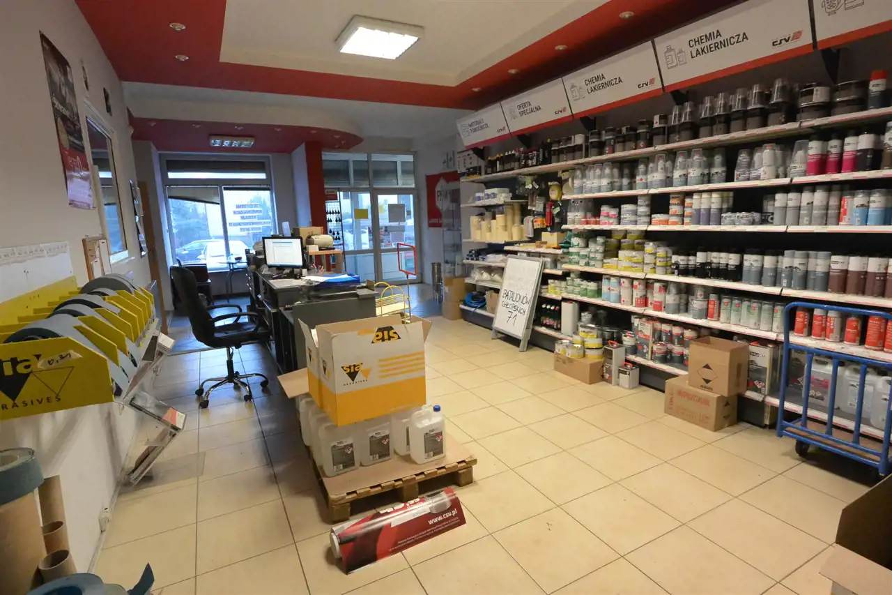 Lokal sprawdzi się zarówno pod działalność handlową/magazynową czy usługową. Przed lokalem parking - do lokalu przynależą 2 miejsca postojowe do użytku najemcy. Możliwość umieszczenia reklamy w witrynach. Lokal wyposażony w zewnętrzne rolety antywłamaniowe.