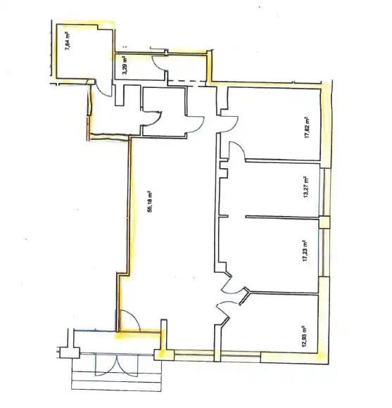 - four office/storage rooms of 12.93 m², 17.23 m², 13.27 m², and 17.62 m²,