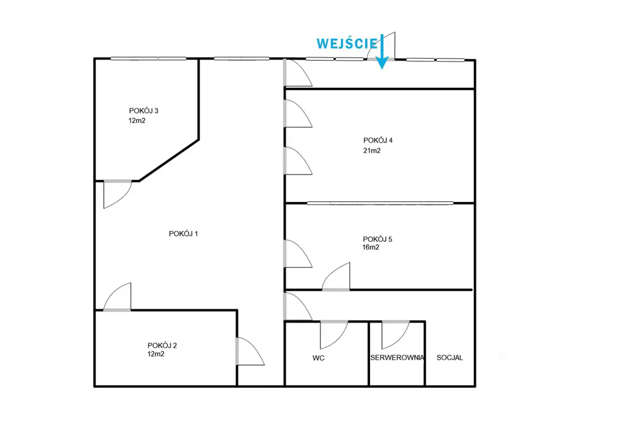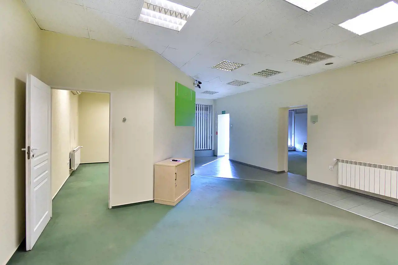 The unit consists of five office rooms ranging from 12 m² to 24 m², a social room, a WC, and a server room. It is possible to rearrange and modify the office layout. Internet installation available in the unit. Parking spaces are available.