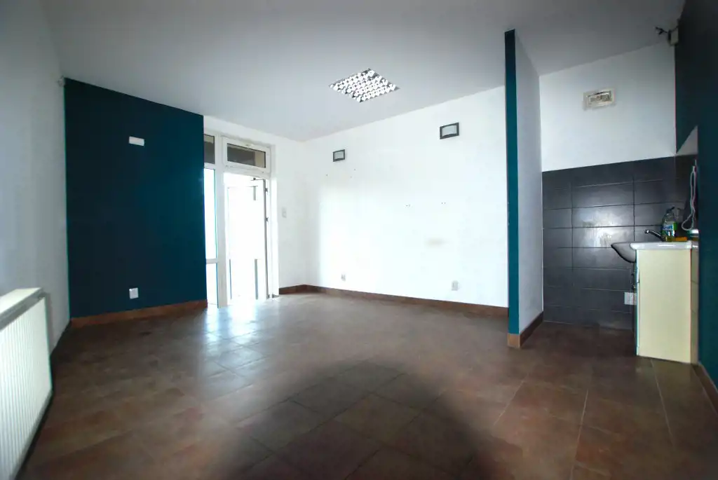 Do wynajęcia lokal użytkowy o powierzchni około 20 m2 zlokalizowany na parterze dwupiętrowego budynku. Lokal składa się z jednego pomieszczenia oraz wnęki z umywalką. Wejście do lokalu bezpośrednio z ulicy. Do dyspozycji najemcy toaleta na klatce schodowej budynku. Ogrzewanie lokalu z sieci miejskiej. Miejsce na reklamę na elewacji budynku. Przed budynkiem stojak na szyld reklamowy.