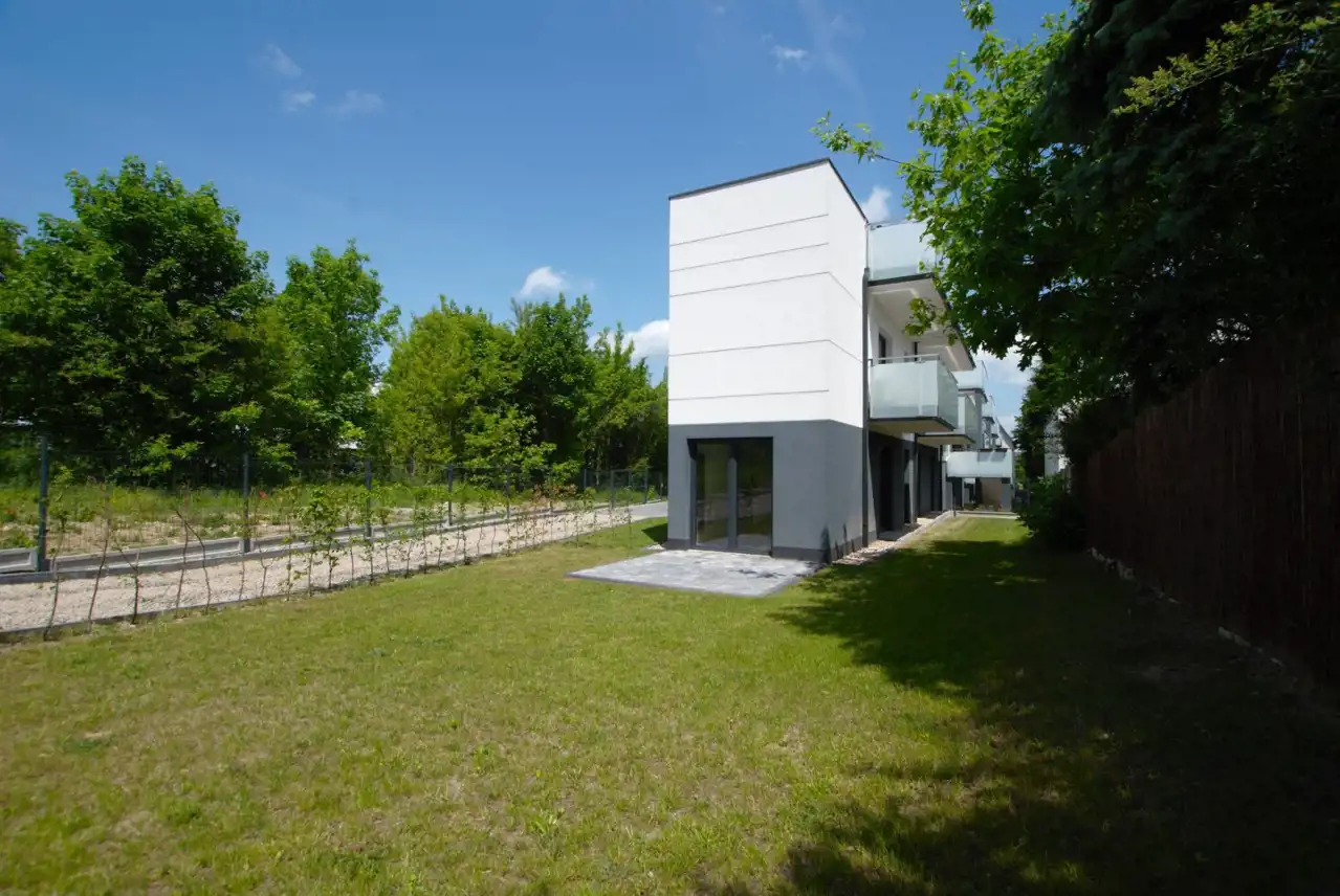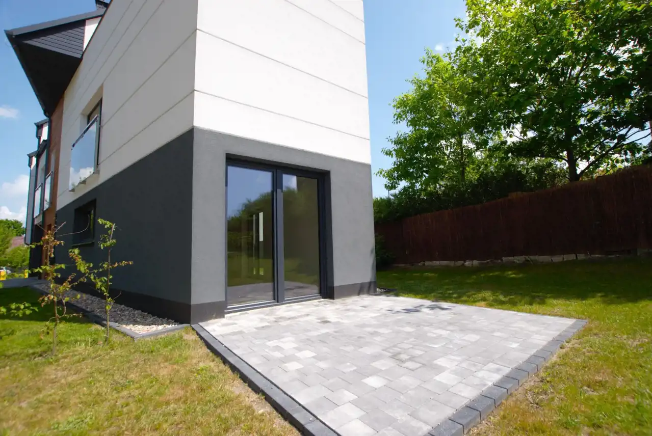 Do segmentu przynależy ogródek o powierzchni 179,87 m2 oraz oprócz garażu jedno zewnętrzne miejsce parkingowe.