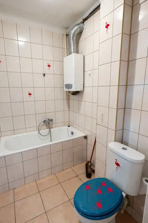 - Media Ogrzewanie: C.O. miejskie; Woda: ciepła - piecyk gazowy; Gaz: jest