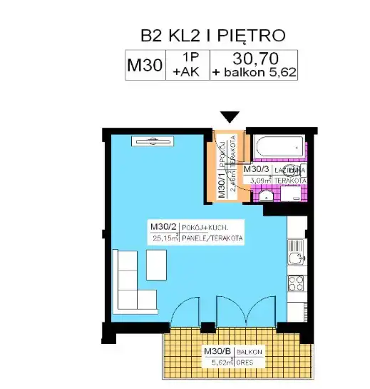 - Charakterystyka mieszkania 30.7 m2, 1 pokój