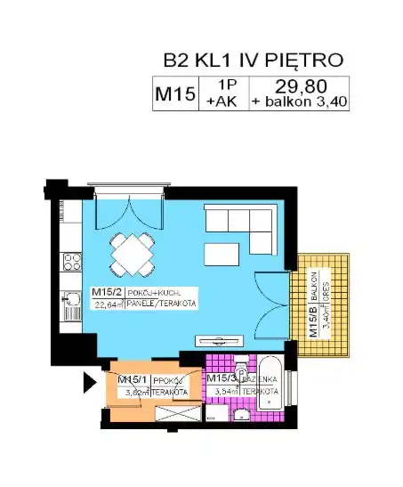 - Charakterystyka mieszkania 29.8 m2, 1 pokój