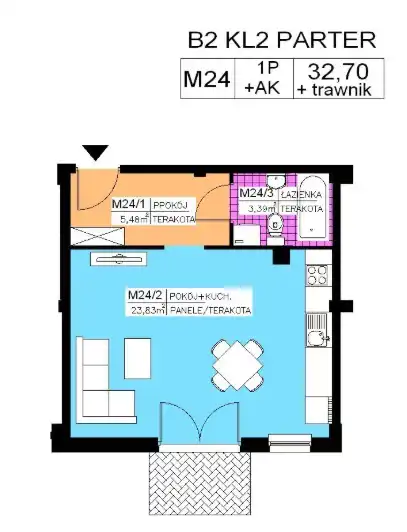- Charakterystyka mieszkania 32.7 m2, 1 pokój