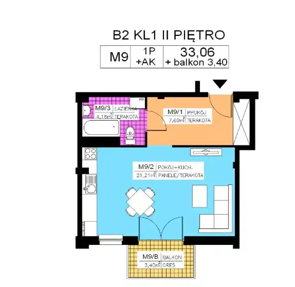 - Charakterystyka mieszkania 33.06 m2, 1 pokój