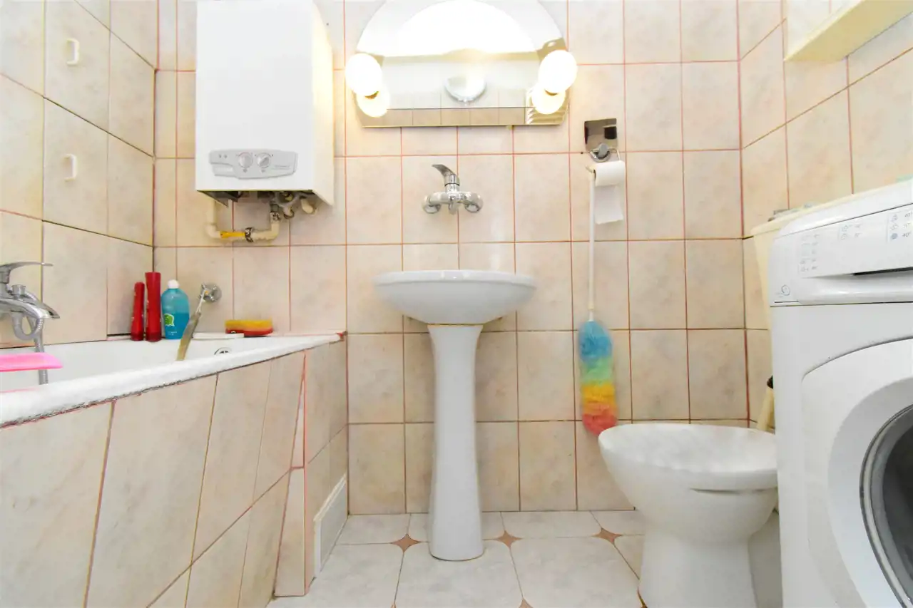 - Media Ogrzewanie: C.O. miejskie; Woda: ciepła - piecyk gazowy; Gaz: jest