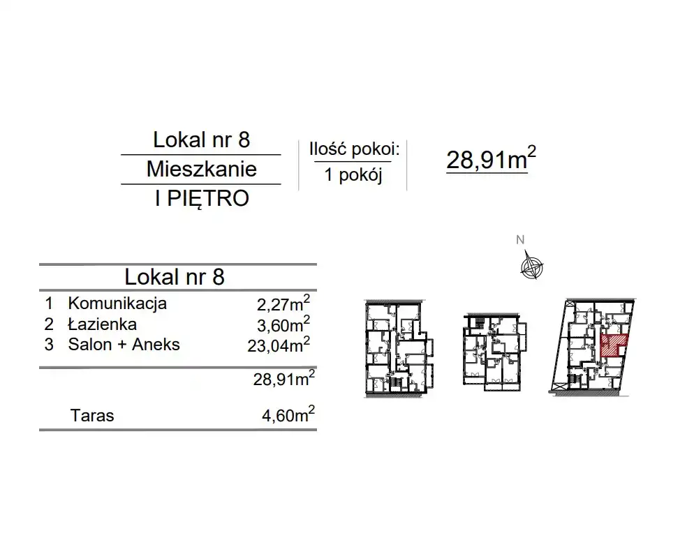 - Charakterystyka mieszkania 28.91 m2, 1 pokój
