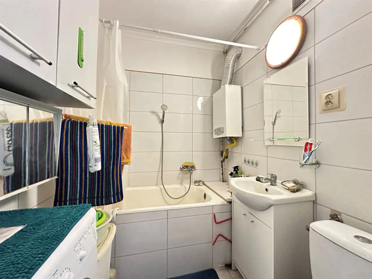 - Media Ogrzewanie: C.O. miejskie; Woda: ciepła - piecyk gazowy; Gaz: jest