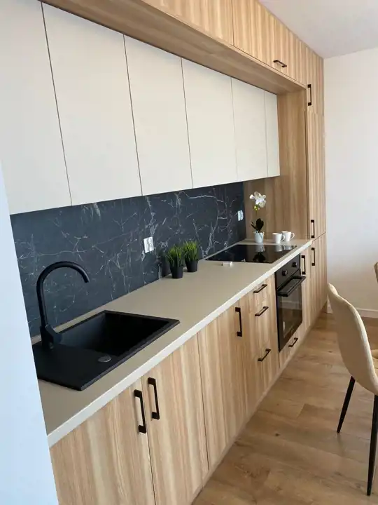 W salonie oraz w sypialni zostały położone piękne i nowoczesne panele, w kuchni oraz w korytarzu - położone zostały nowoczesne płytki. Ponadto wszystkie instalacje oraz drzwi zostały wymienione na nowe. Kuchnia została wykonana w zabudowie "pod wymiar" wraz z wyposażeniem w sprzęt AGD renomowanych marek: lodówko-zamrażarka, piekarnik elektryczny, kuchenka, pochłaniacz, zlewozmywak z baterią.