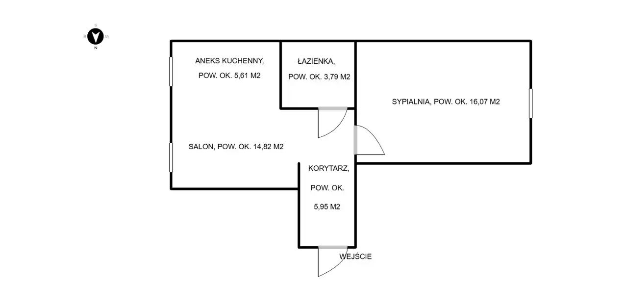 - Charakterystyka mieszkania 45.04 m2, 2 pokoje
