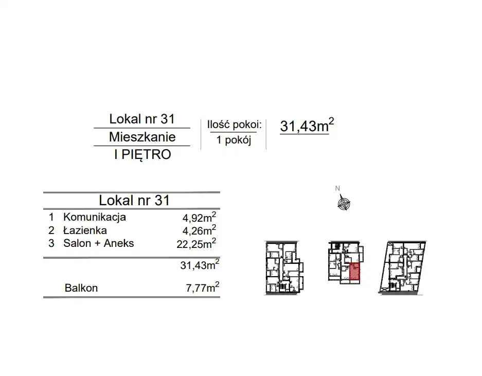 - Charakterystyka mieszkania 31.43 m2, 1 pokój