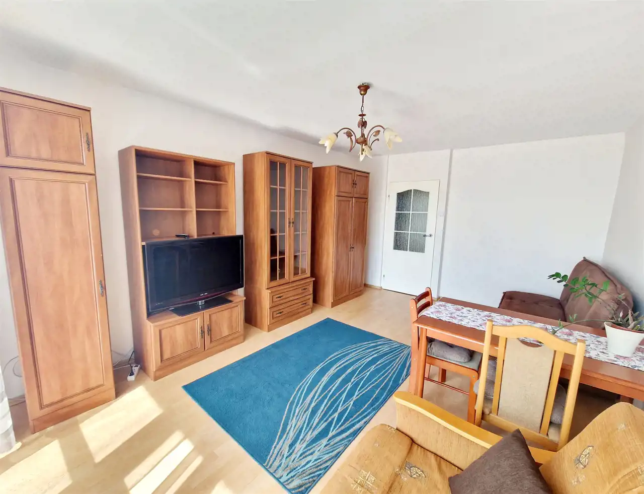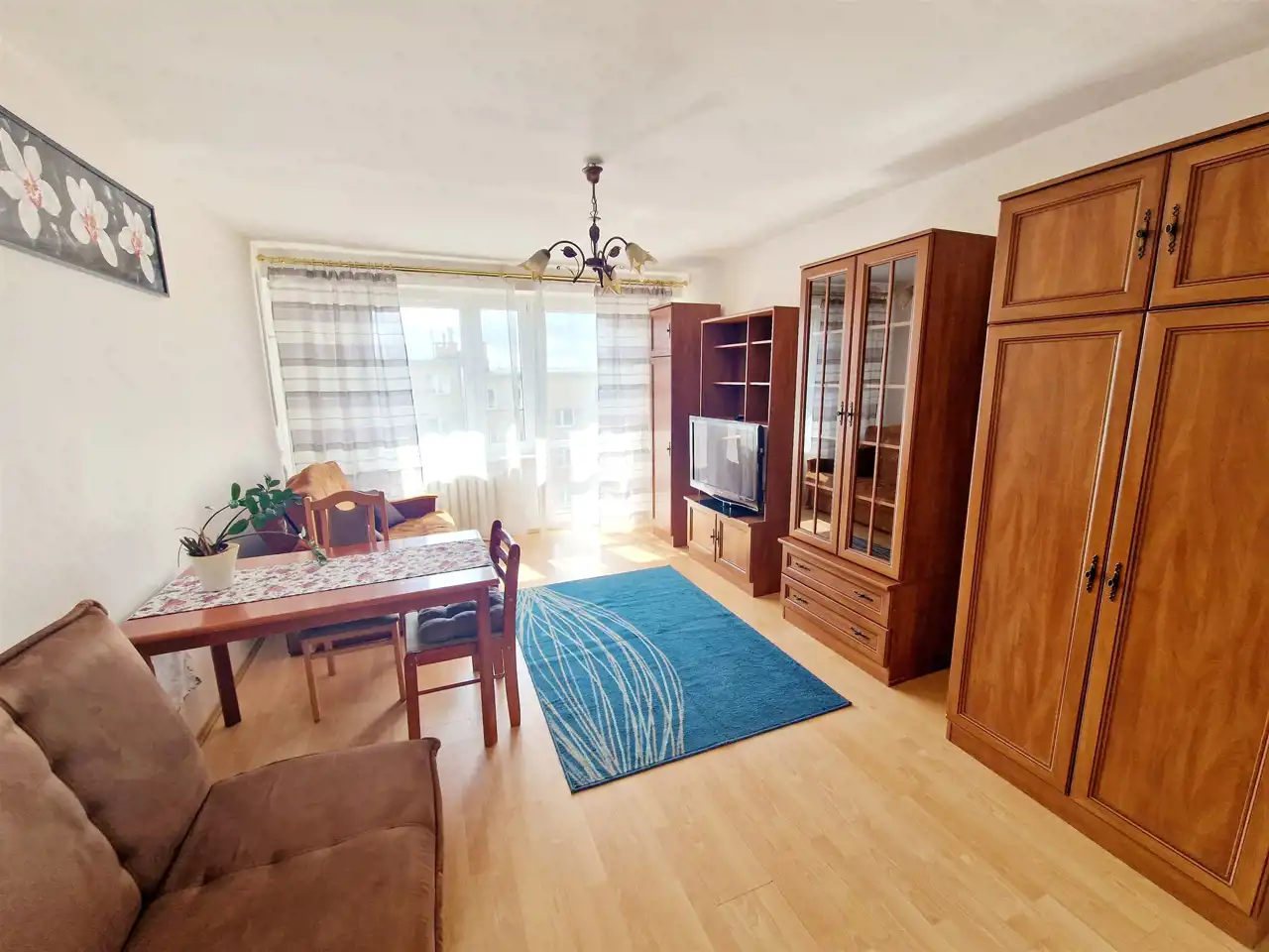 - ustawny salon z wyjściem na balkon,