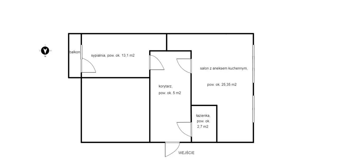 Powierzchnie pomieszczeń podane na podstawie wskazań dalmierza.