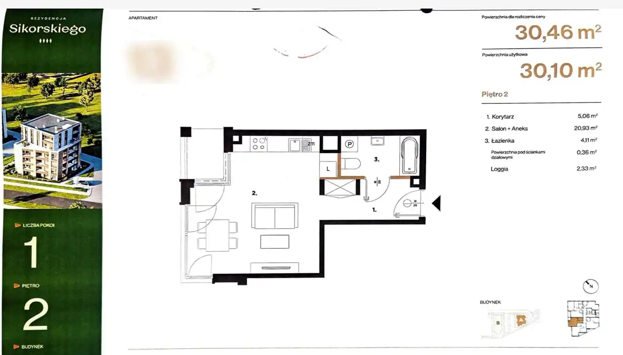 - Charakterystyka mieszkania 30.1 m2, 1 pokój