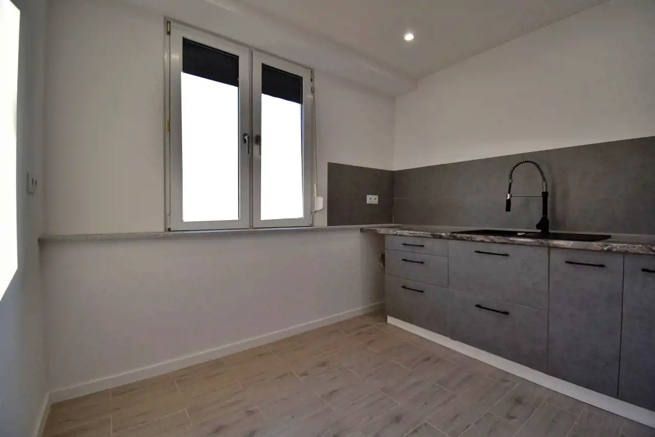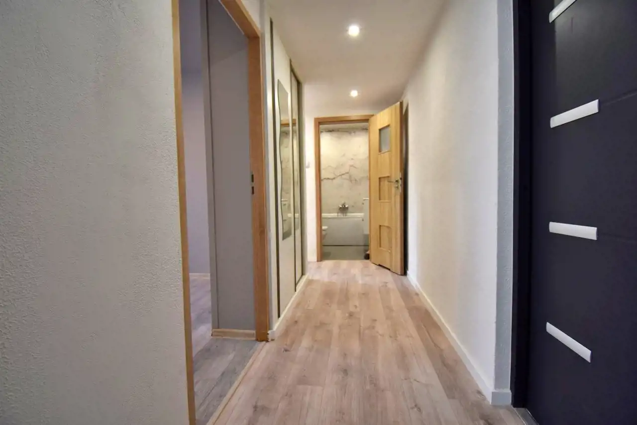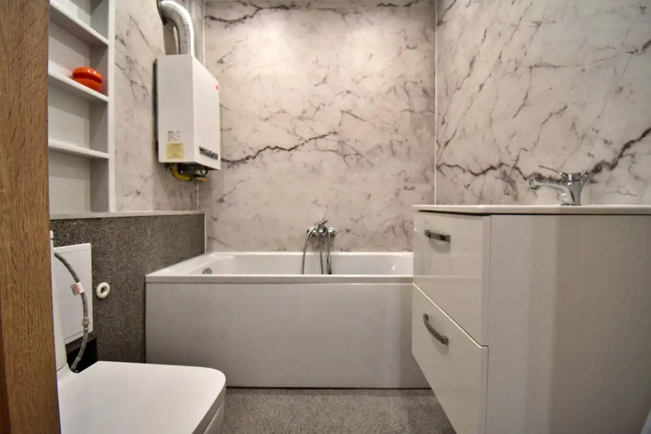 The apartment was partially renovated in 2025. During the renovation, the kitchen and bathroom were refurbished, new lighting was installed, the walls were repainted, and the water and sewage installations as well as the electrical installations were replaced (except for the electrical installation in the living room).