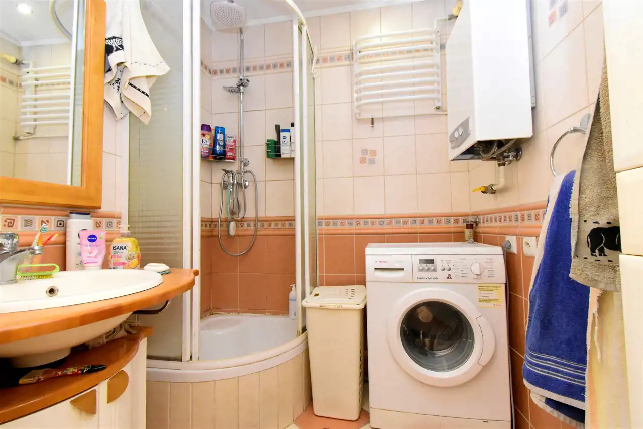 - Media Ogrzewanie: C.O. miejskie; Woda: ciepła - piecyk gazowy; Gaz: jest