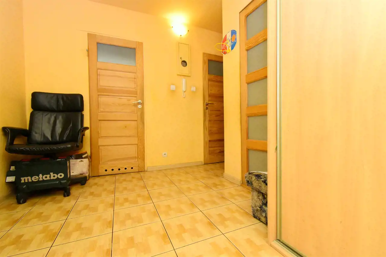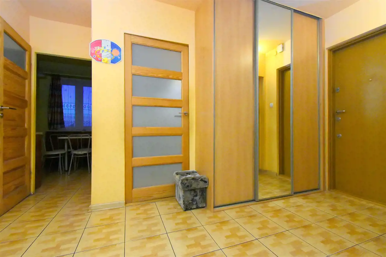 - funkcjonalnego, przestronnego przedpokoju z pojemną szafą w zabudowie, z którego mamy osobne wejścia do każdego z pomieszczeń.